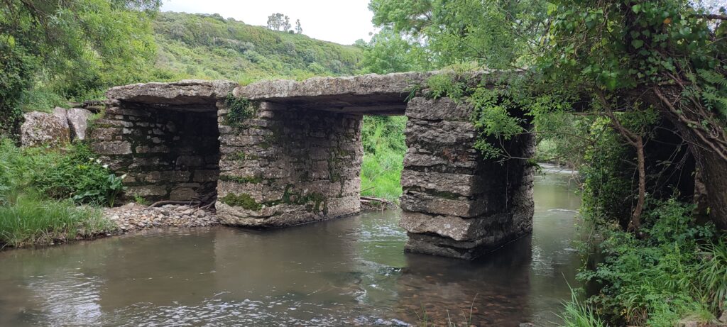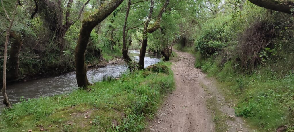 Descemos então até à ribeira de Cabrela, onde a paisagem muda e se refresca. À medida que caminhamos junto à água, somos acompanhados pelo som da ribeira e pelo chilrear de aves que habitam nas margens e que ecoam na frescura da vegetação ribeirinha.