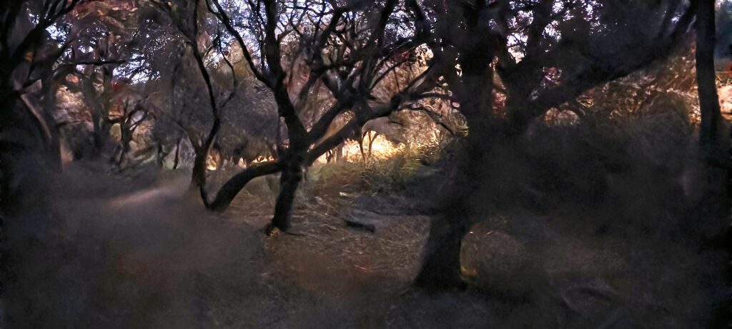 Percorremos a ribeira que neste momento está quase seca, e percorremos a escuridão da Mata